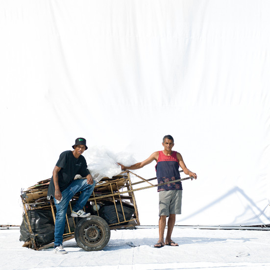Raoni Maddalena, paulistano, trabalha com vídeo e fotografia. Seu ensaio, ao contrário dos outros dois, traz uma perspectiva mais otimista. Utiliza um recurso técnico de controle da cena ao montar um fundo neutro e empregar a luz natural para retratar o cidadão anônimo como protagonista de sua própria história. Volta sua câmera para aqueles que atuam na reciclagem, setor essencial da economia verde brasileira. Seu olhar sensível sobre as questões sociais valoriza os catadores de resíduos sólidos, que movem seus corpos e suas máquinas para reativar o ciclo de reaproveitamento do lixo descartado, gerando trabalho, renda e esperança.
